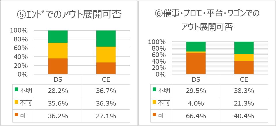⑥催事・プロモ・平台・ワゴン等でのアウト展開可否