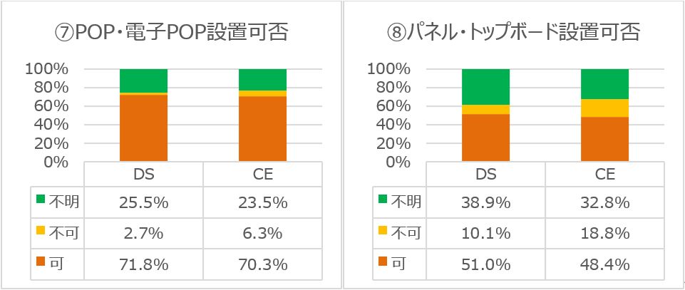 | 販促物設置 | ⑦POP・電子POP設置可否 |