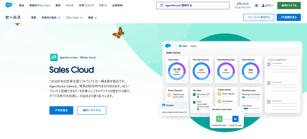 Salesforce Sales Cloudは、国内外でトップシェアを誇るSalesforceが提供するSFA/CRMツールです。営業プロセスを効率化し、売上向上を支援するためのツールや機能を提供します。